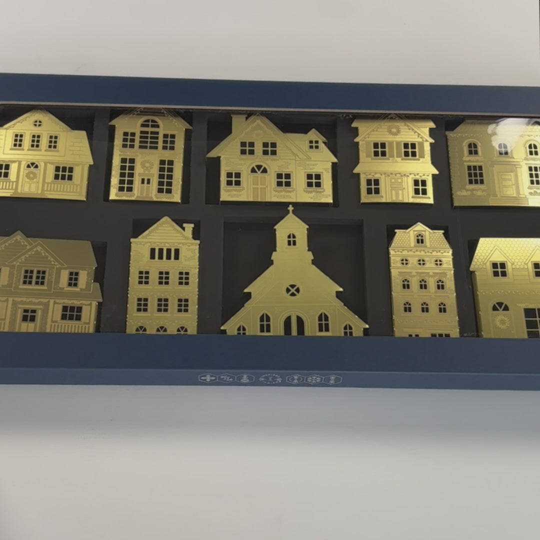 - 10 Christmas village ornaments in luxury gift box